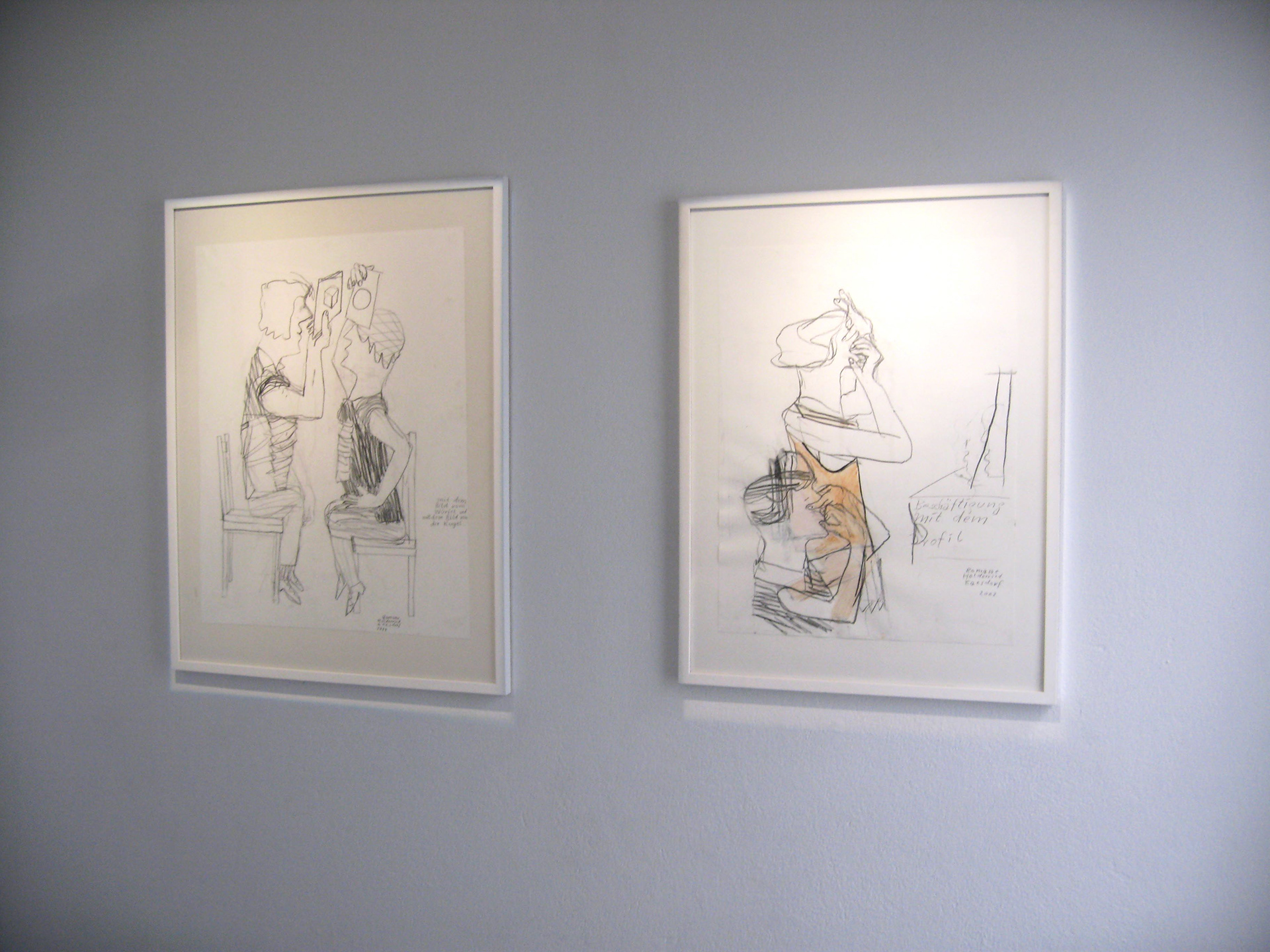 Nach Abschluss der Reise, Ausstellungsansicht, Zeichnung von Romane Holderried-Kaesdorf